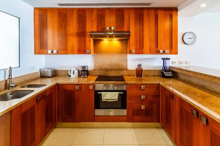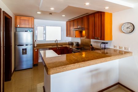 The kitchen is fully equipped so you will be able to cook whatever you want. Also, this condo has a laundry area with washer and dryer, a spacious living room and dining room for 6 people.